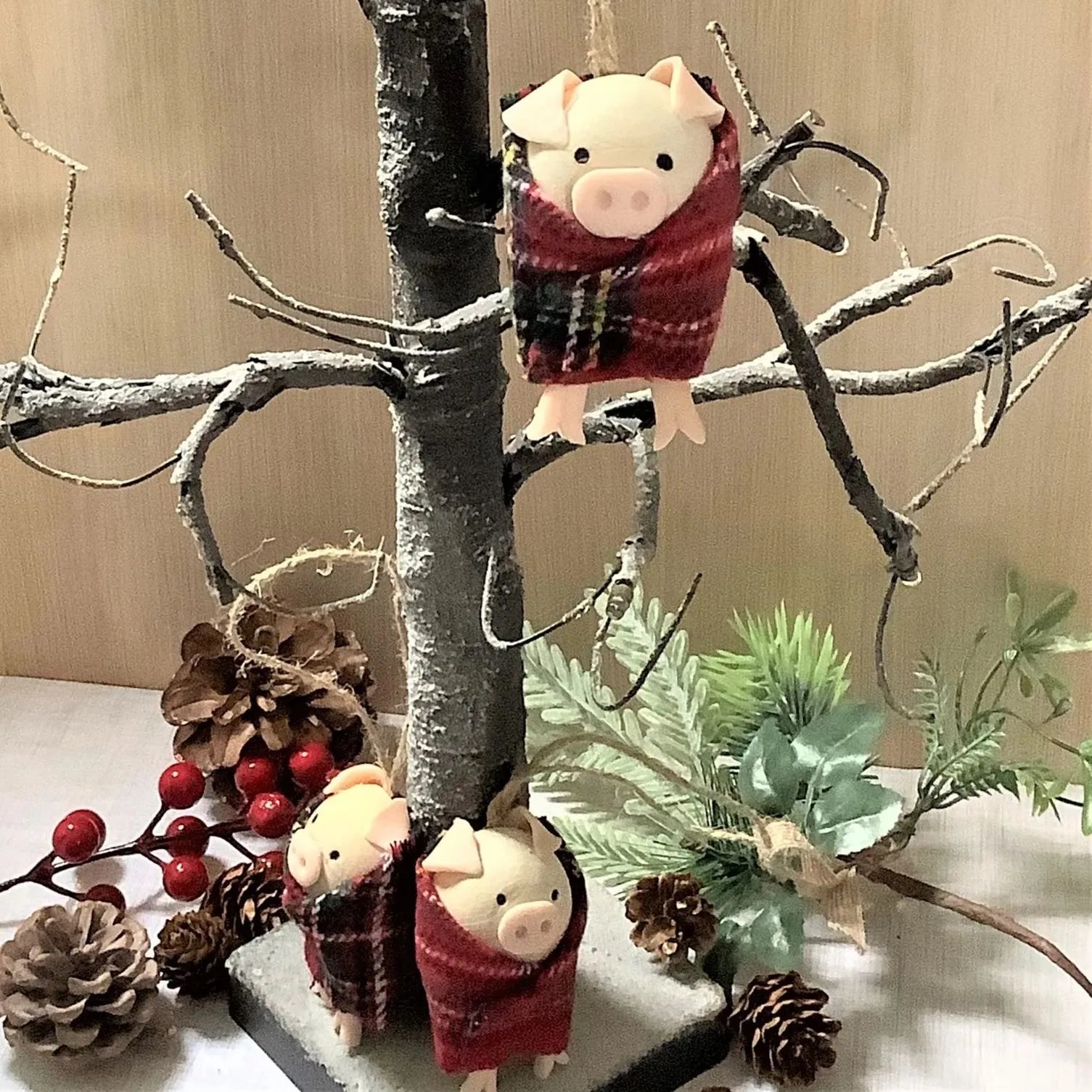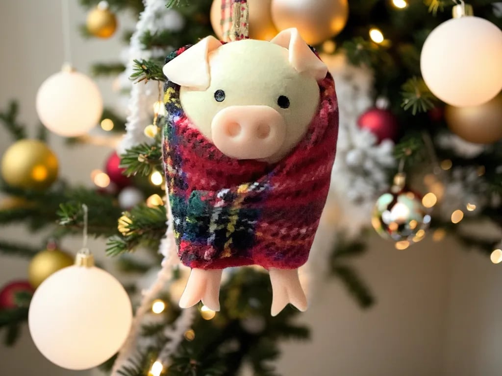 This sweet little 'Pig in a blanket' hanging decoration is perfect for adding some Christmas cuteness to your tree!
