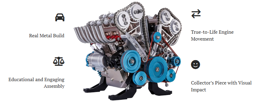Teching V8 engine model is made from high-quality metal, offering a true-to-life look at how car engines work. It’s built to last longer and perform better than plastic or wooden models.